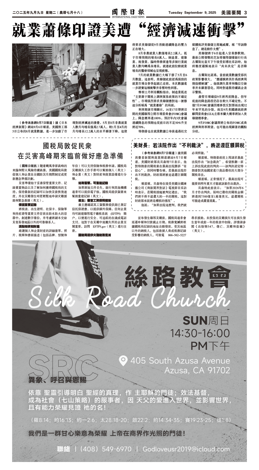 9日國際日報3-美國要聞 发布日期:2025/9/10 来源: 打印