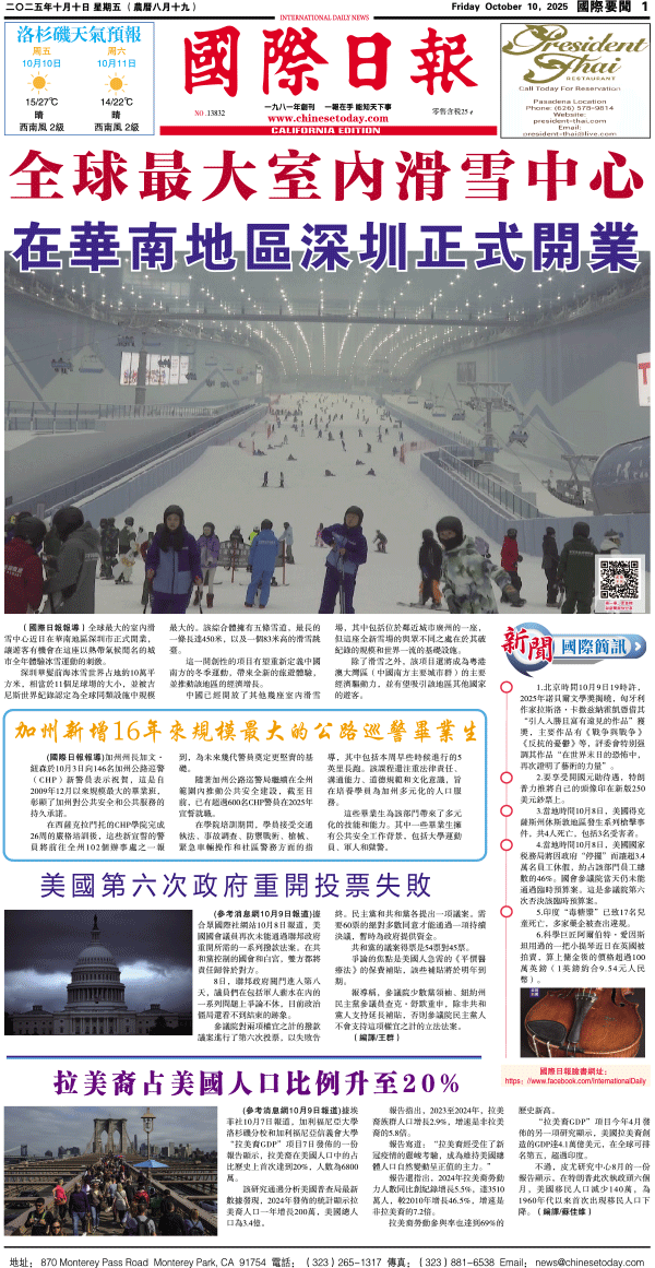 10日國際日報1-國際要聞 发布日期:2025/10/10 来源:國際日報 打印