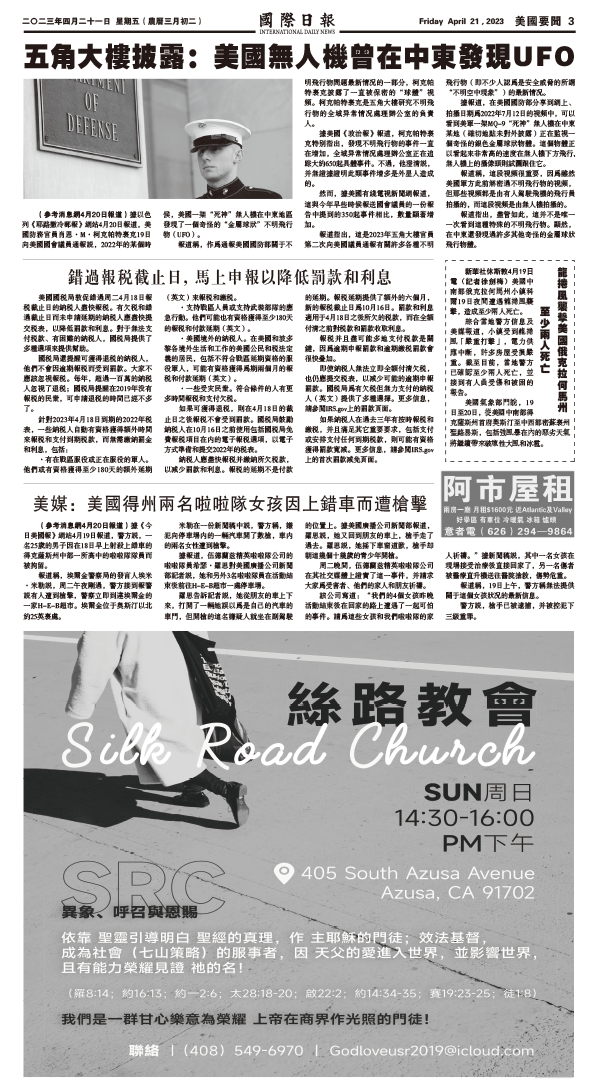 21日國際日報3-美國要聞 发布日期:2023/4/21 来源: 打印