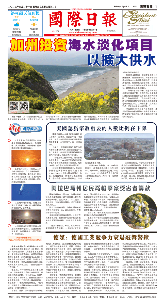 21日國際日報1-國際要聞 发布日期:2023/4/21 来源:國際日報 打印