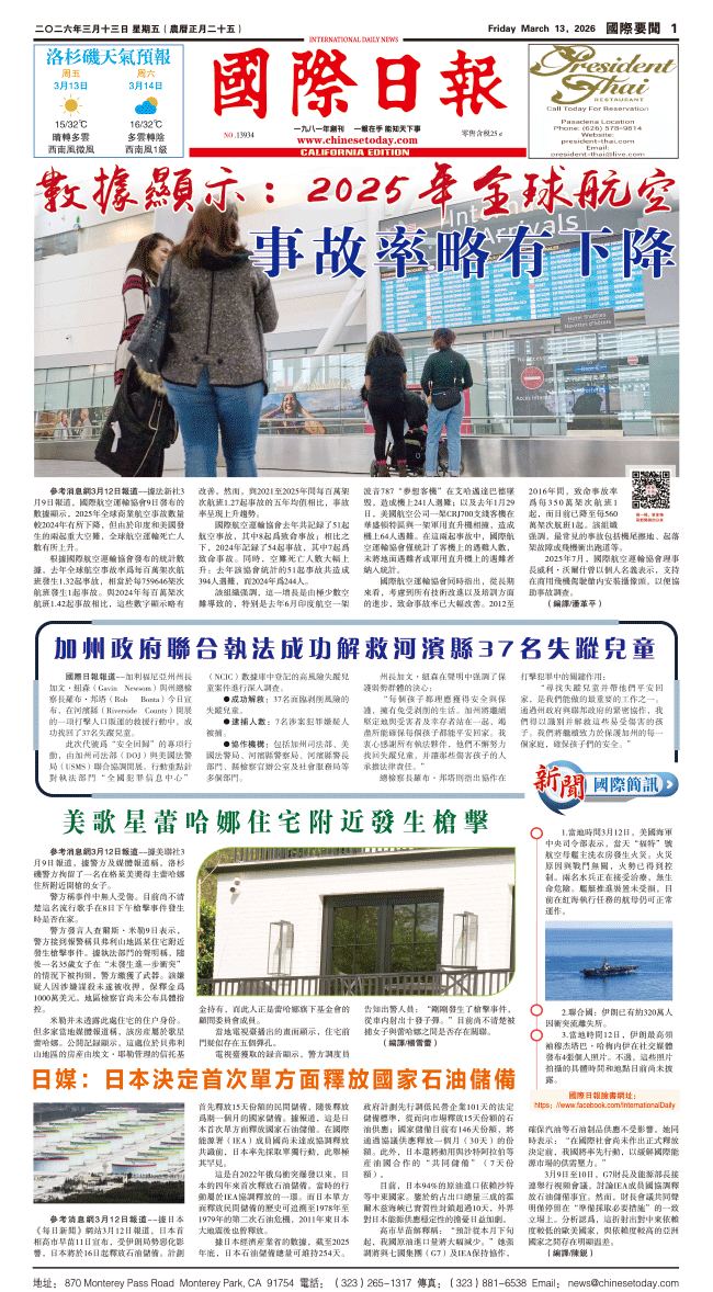13日國際日報1-國際要聞 发布日期:2026/3/13 来源:國際日報 打印