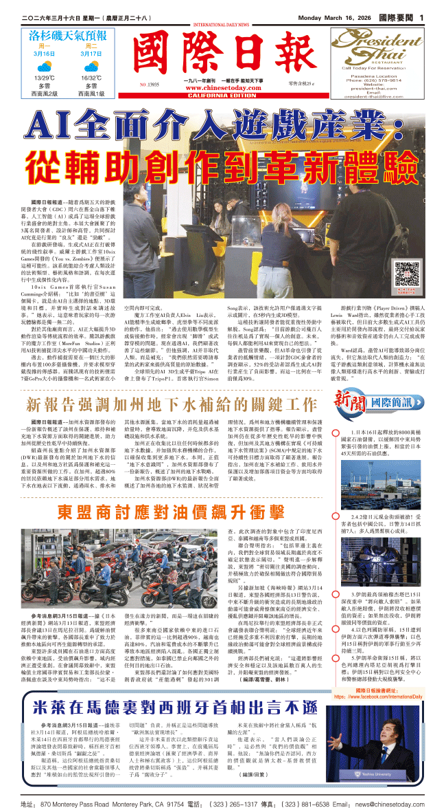16日國際日報1-國際要聞 发布日期:2026/3/17 来源:國際日報 打印
