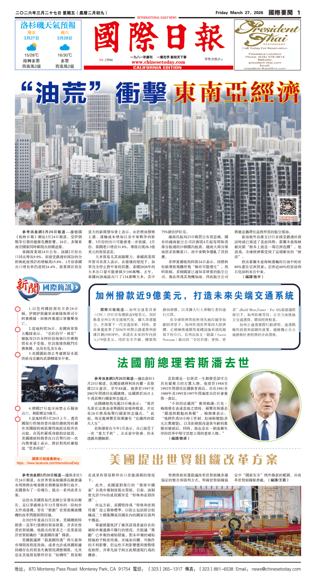 27日國際日報1-國際要聞 发布日期:2026/3/27 来源:國際日報 打印