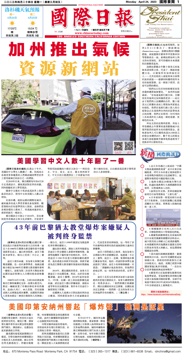 24日國際日報1-國際要聞 发布日期:2023/4/24 来源:國際日報 打印