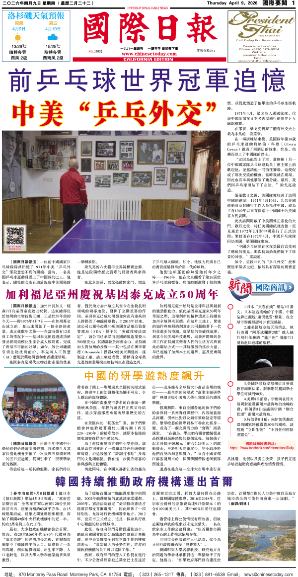 9日國際日報1-國際要聞 发布日期:2026/4/9 来源:國際日報 打印