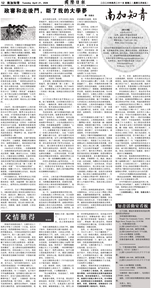 21日國際日報12-南加知青 发布日期:2026/4/21 来源:國際日報 打印