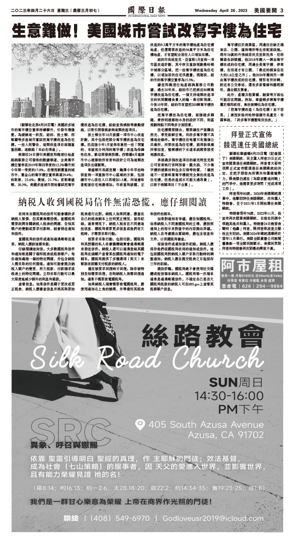 26日國際日報3-美國要聞 发布日期:2023/4/26 来源: 打印