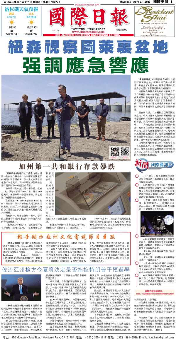 27日國際日報1-國際要聞 发布日期:2023/4/27 来源:國際日報 打印