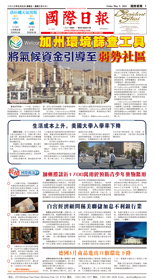 5日國際日報1-國際要聞 发布日期:2023/5/5 来源:國際日報 打印