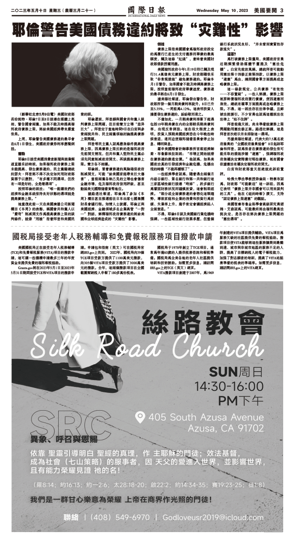 10日國際日報3-美國要聞 发布日期:2023/5/11 来源: 打印