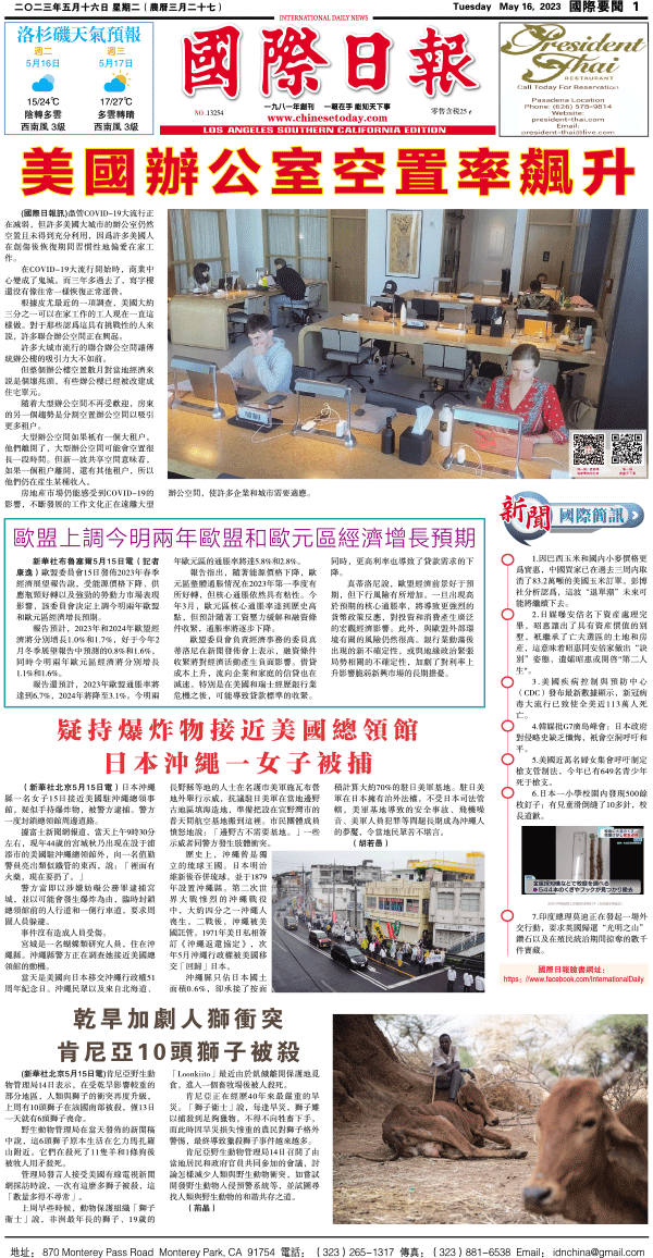16日國際日報1-國際要聞 发布日期:2023/5/16 来源:國際日報 打印
