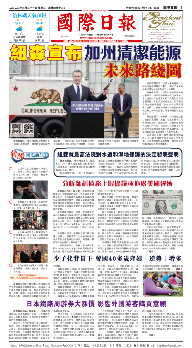 31日國際日報1-國際要聞 发布日期:2023/5/31 来源:國際日報 打印