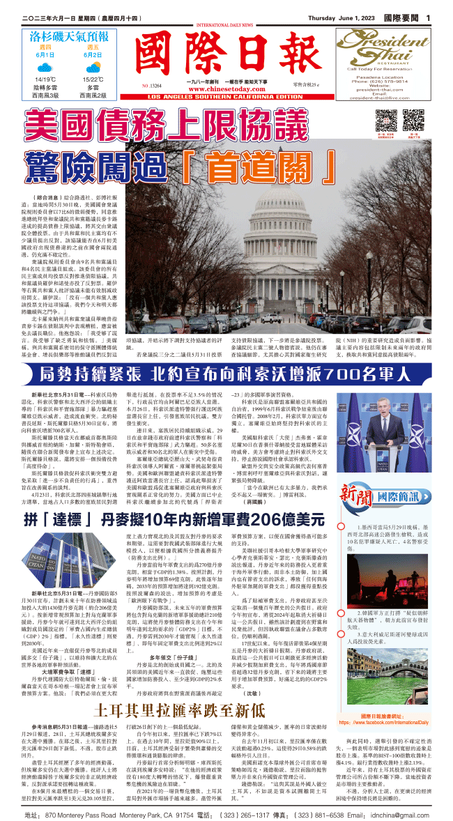 1日國際日報1-國際要聞 发布日期:2023/6/1 来源:國際日報 打印