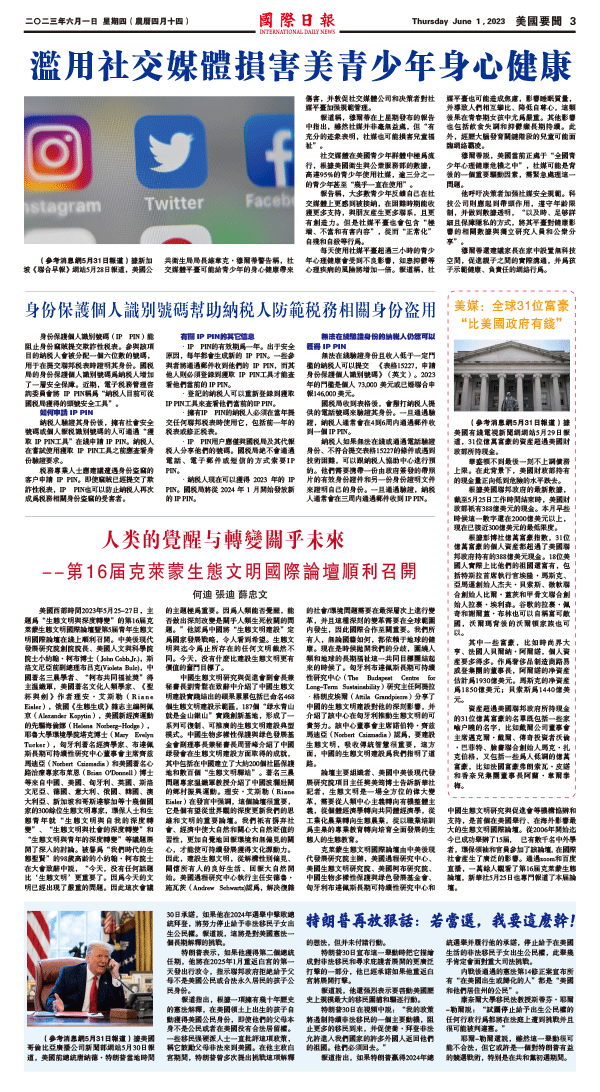 1日國際日報3-美國要聞 发布日期:2023/6/5 来源: 打印