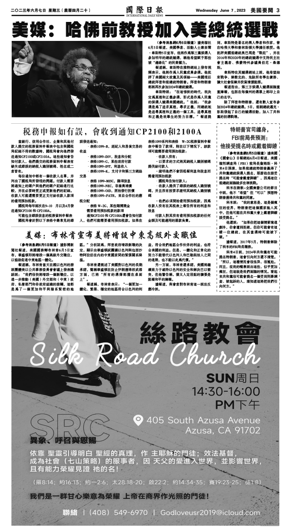 7日國際日報3-美國要聞 发布日期:2023/6/8 来源: 打印