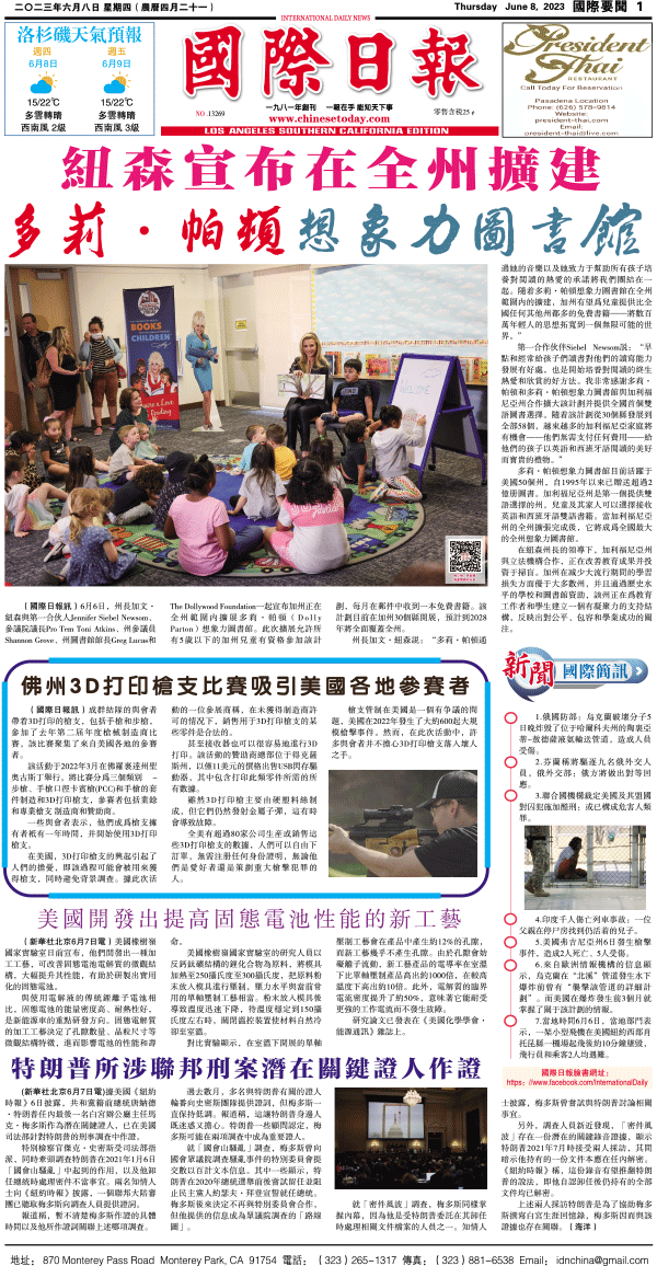 8日國際日報1-國際要聞 发布日期:2023/6/8 来源:國際日報 打印