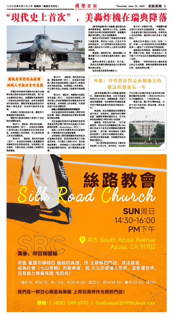 22日國際日報3-美國要聞 发布日期:2023/6/26 来源: 打印