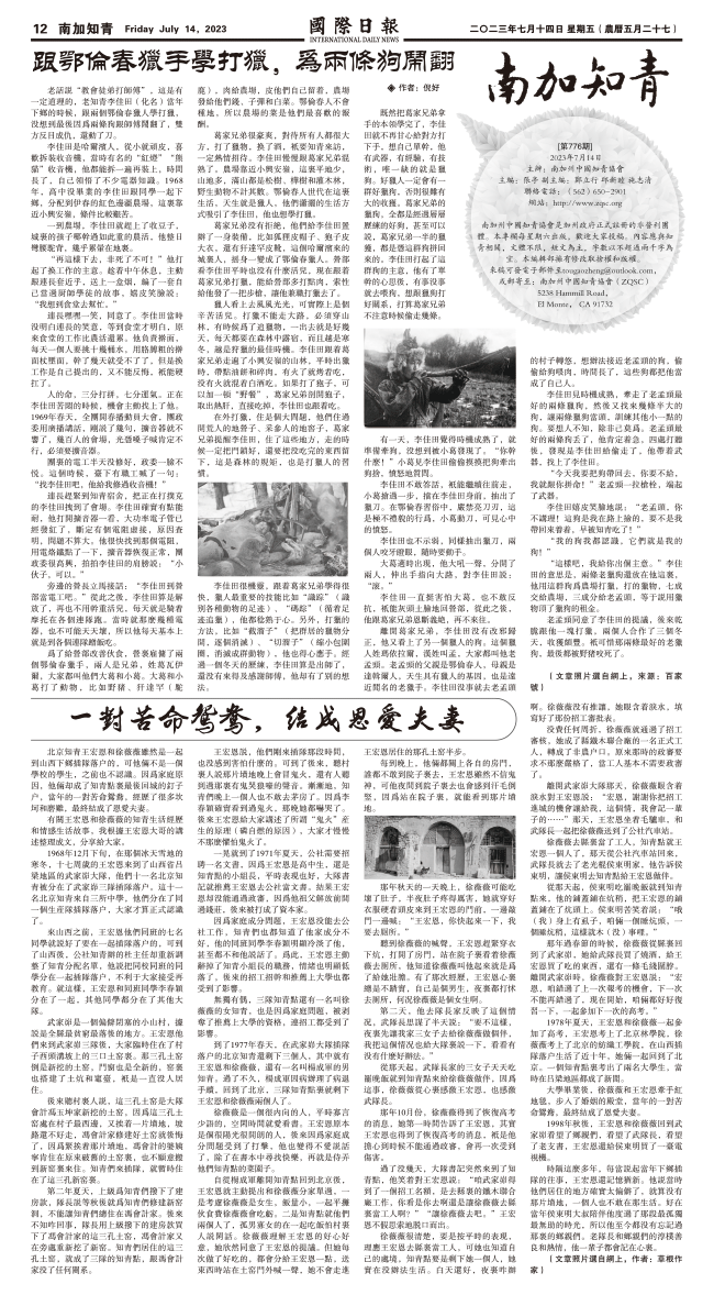 14日國際日報12-南加知青 发布日期:2023/7/14 来源:國際日報 打印