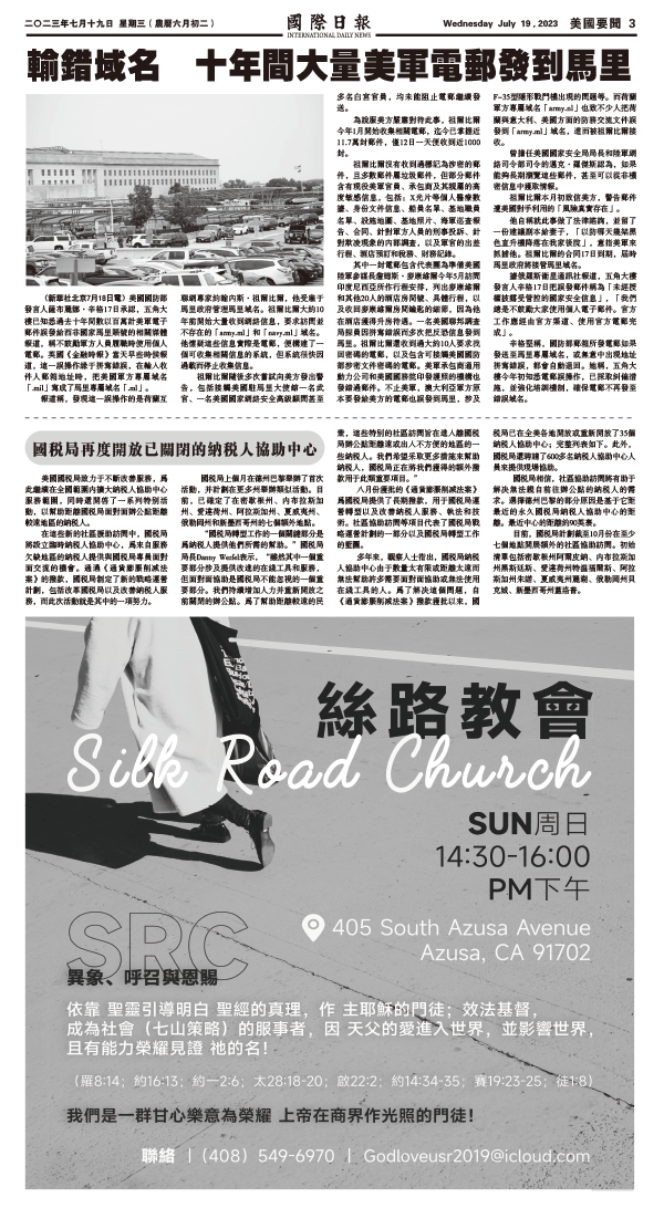 19日國際日報3-美國新聞 发布日期:2023/7/21 来源: 打印