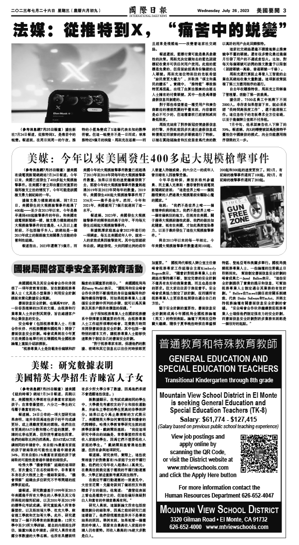 26日國際日報3-美國要聞 发布日期:2023/7/26 来源: 打印