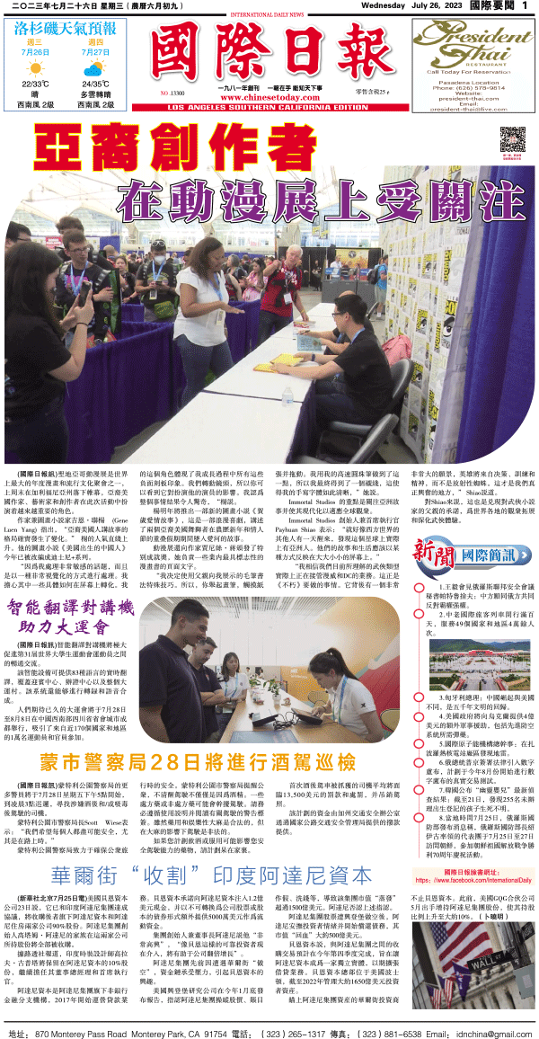 26日國際日報1-國際要聞 发布日期:2023/7/27 来源:國際日報 打印