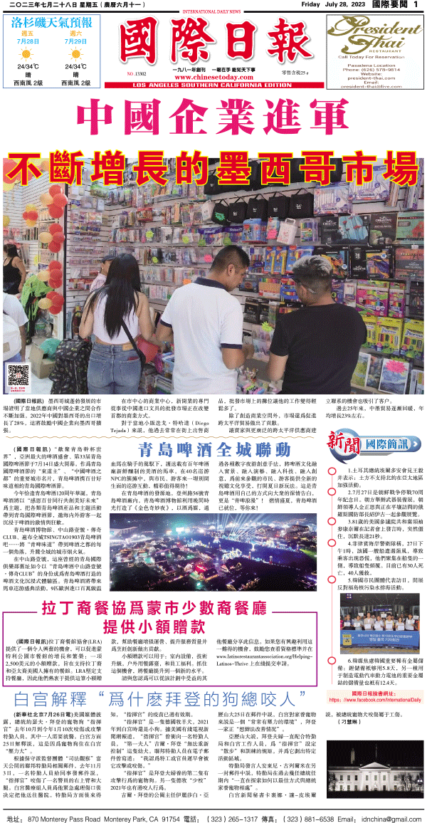 28日國際日報1-國際要聞 发布日期:2023/7/28 来源:國際日報 打印