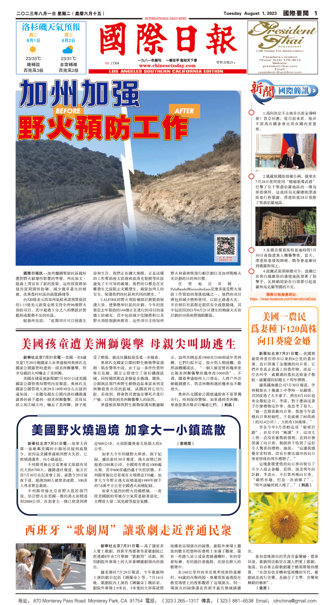 1日國際日報1-國際要聞 发布日期:2023/8/1 来源:國際日報 打印