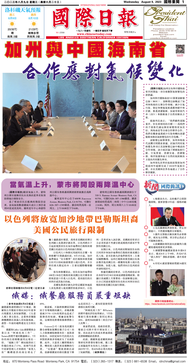 9日國際日報1-國際要聞 发布日期:2023/8/9 来源:國際日報 打印