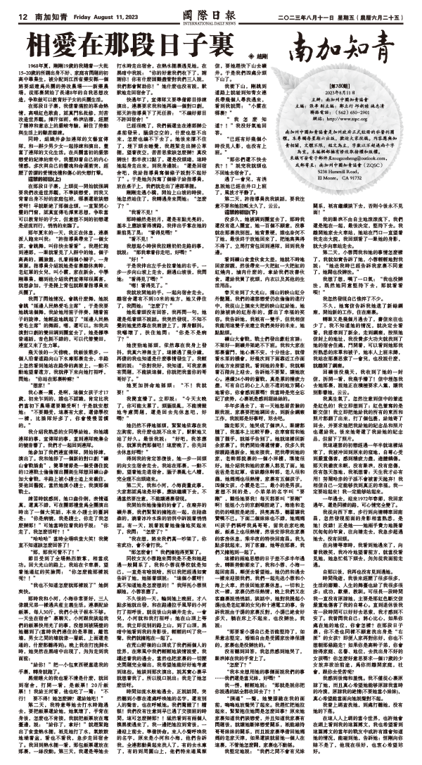 11日國際日報12-南加知青 发布日期:2023/8/14 来源: 打印