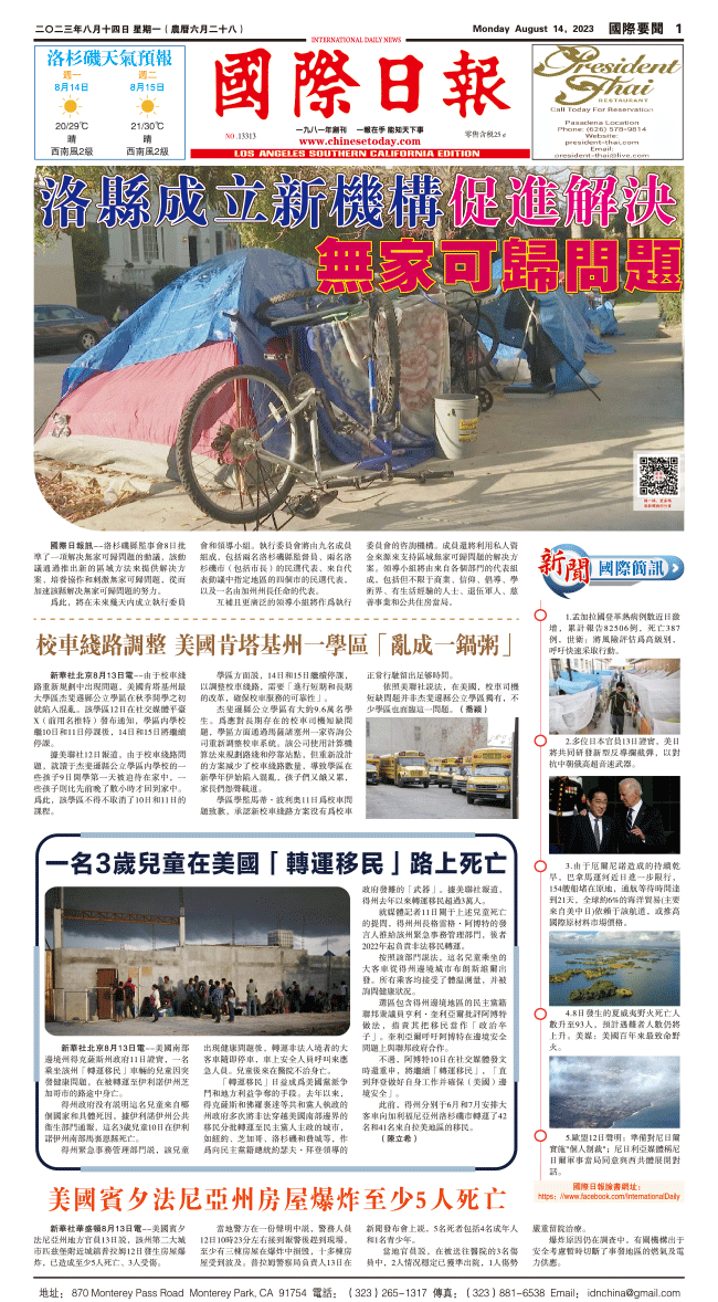 14日國際日報1-國際要聞 发布日期:2023/8/14 来源:國際日報 打印