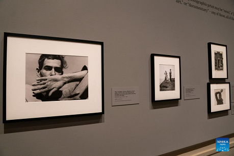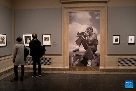 People attend the exhibition Dorothea Lange: Seeing People at the National Gallery of Art in Washington, D.C., the United States, on Jan. 3, 2024. Featuring some 100 photographs, the exhibition Dorothea Lange: Seeing People addresses Lange's innovative approaches to picturing people, emphasizing her work on social issues including economic disparity, migration, poverty, and racism. (Xinhua/Liu Jie)