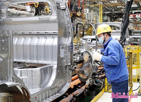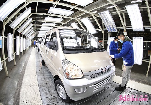 Workers are busy assembling vans in the workshop of Qingdao Base of SGMW, in Qingdao Area of Shandong Pilot Free Trade Zone. As the new year begins, enterprises in Shandong are riveting full energy to meet the market order.