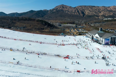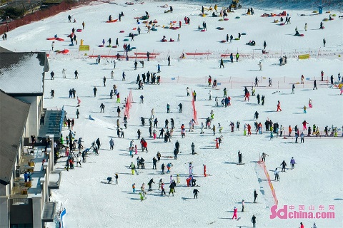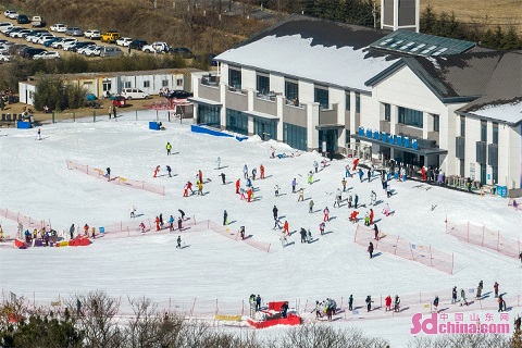 People are seen enjoying winter sports during the Spring Festival holidays in Cangma Mountain Scenic Spot in Qingdao, E China’s Shandong Province. (Photo by Han Jiajun)