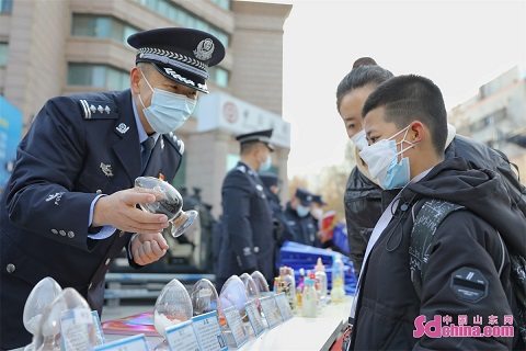 Today marks the third Chinese People’s Police Day. A celebration and “110 Awareness Day” campaign were held in Qingdao, China’s Shandong province to popularize acknowledge of police equipment, laws and regulations, common sense of security. (Photo by Zhang Ying)