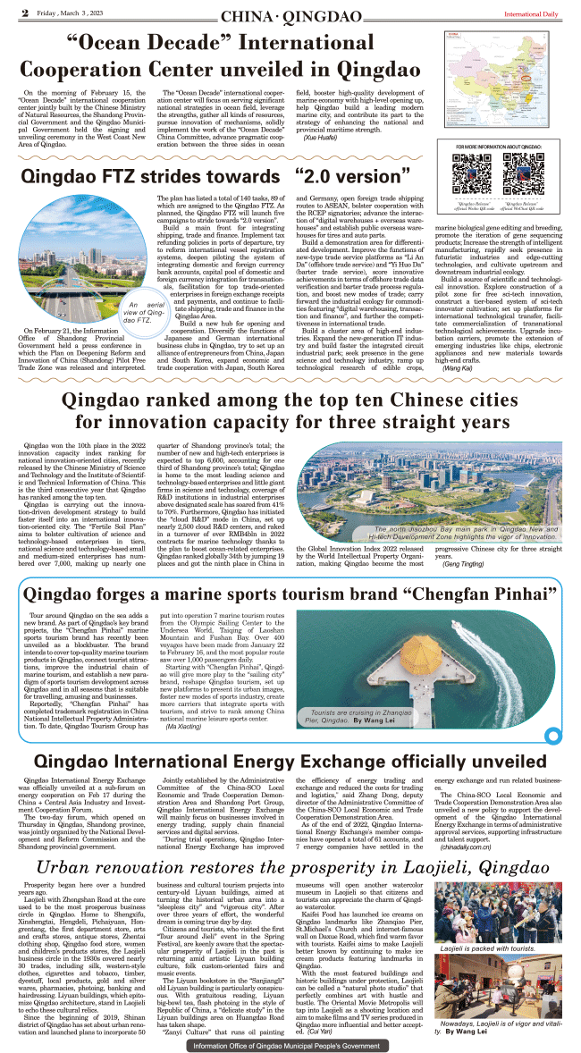 3/3-International Daily News CHINA.QINGDAO 2023/3/3 source: International daily Print