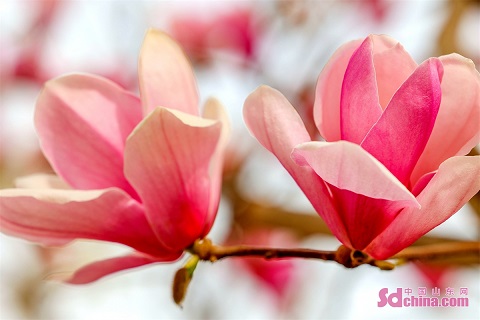Magnolia blossoms on both sides of the street in Cangma Town in Qingdao, China’s Shandong Province, showing a charming scene with vitality. (Photo by Han Jiajun)