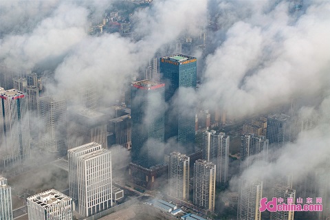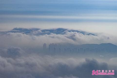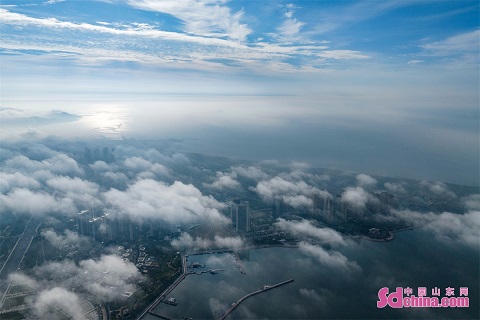 Feast your eyes with the gorgeous view of Qingdao in fog. Qingdao is blanketed by a thick of advection fog, turning it into a dreamlike wonderland. (Photo by Han Jiajun)