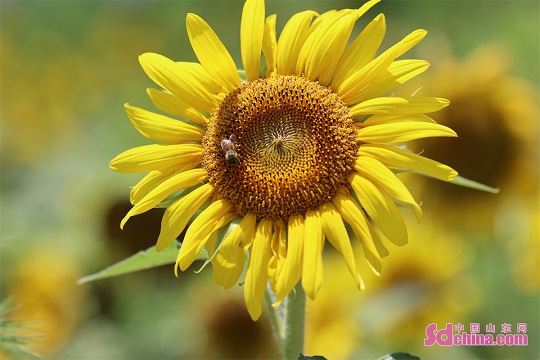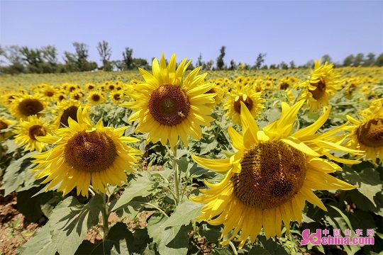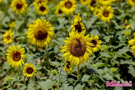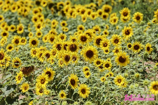 Sunflowers enter the flowering period in Zhangjialou sub-district in Qingdao, E China’s Shandong province. The blossoming sunflowers thrive in the sun, creating a particularly beautiful picture. (Photo by Han Jiajun)