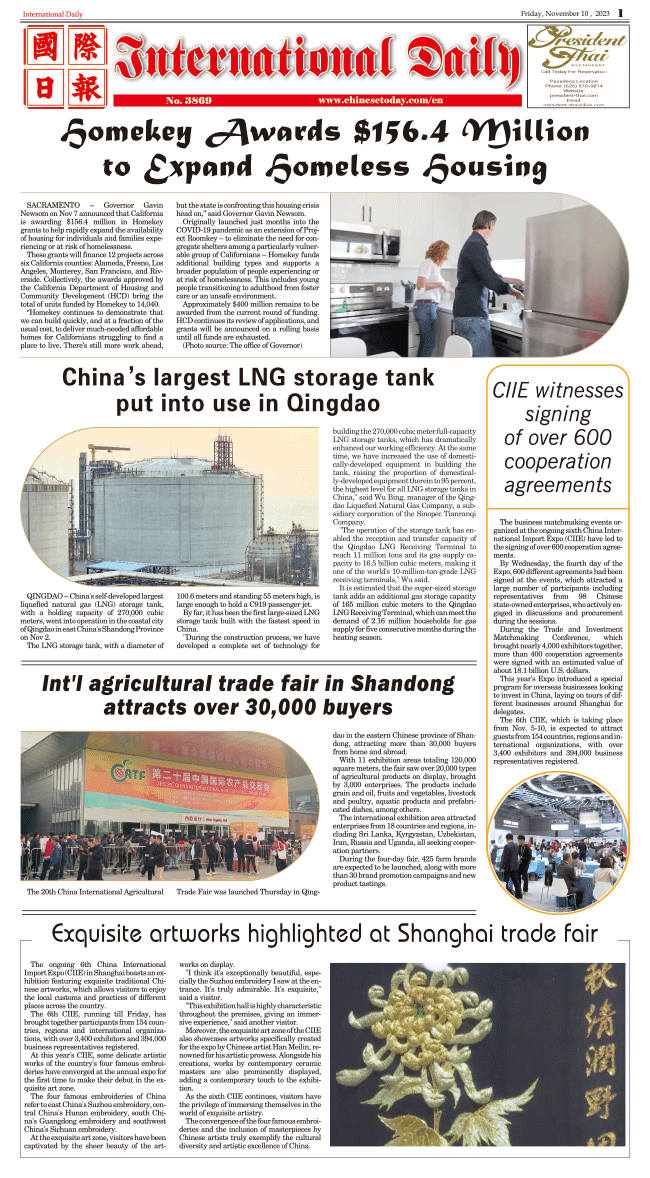 11/10-International Daily News INTERNATIONAL DAILY 发布日期:2023/11/10 来源:International daily 打印