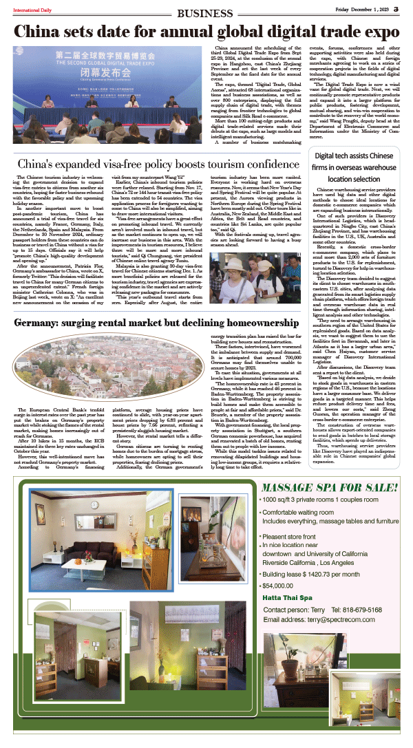 12/1-International Daily News- BUSINESS 发布日期:2023/12/1 来源: 打印