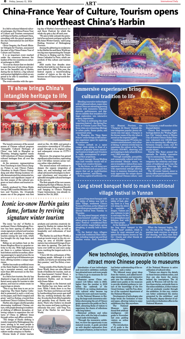 1/12-International Daily News-ART 发布日期:2024/1/12 来源:International Daily 打印