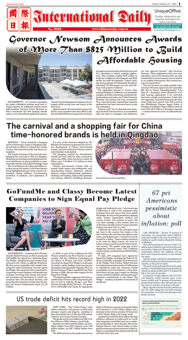 2/10-International Daily News INTERNATIONAL DAILY 发布日期:2023/2/10 来源:International daily 打印
