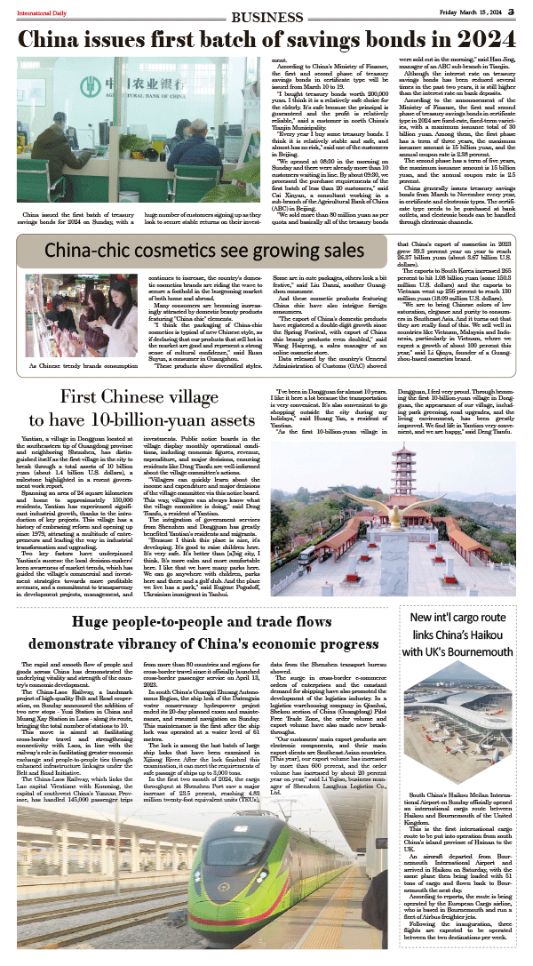 3/15-International Daily News -BUSINESS 发布日期:2024/3/15 来源: 打印