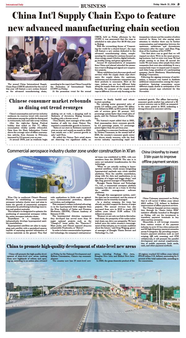 3/22-International Daily News- BUSINESS 发布日期:2024/3/22 来源: 打印