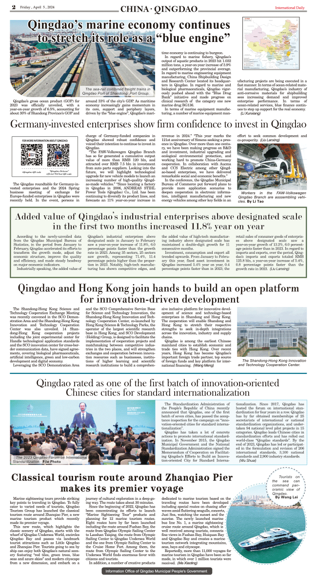 4/5-International Daily News CHINA.QINGDAO 发布日期:2024/4/4 来源:International Daily 打印