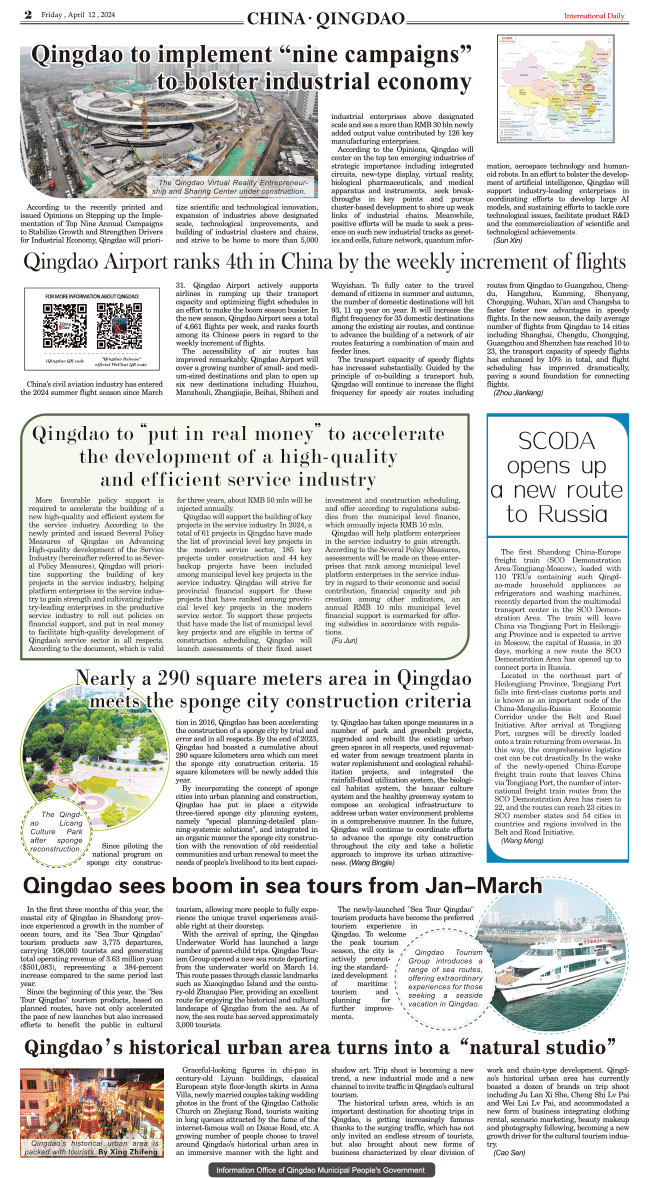 4/12-International Daily News CHINA.QINGDAO 发布日期:2024/4/11 来源:International Daily 打印