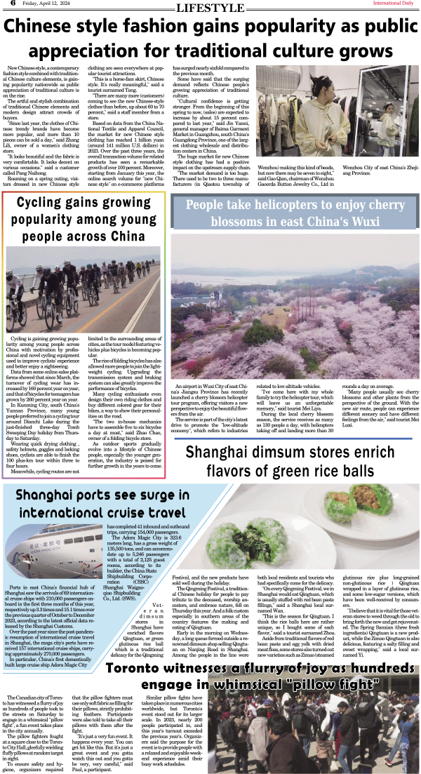 4/12-International Daily News-LIFESTYLE 发布日期:2024/4/12 来源:International Daily 打印