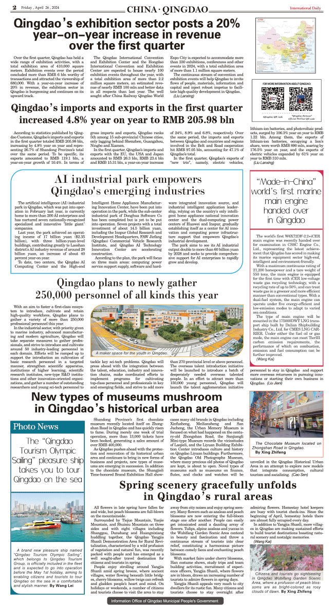 4/26-International Daily News CHINA.QINGDAO 发布日期:2024/4/26 来源:International Daily 打印