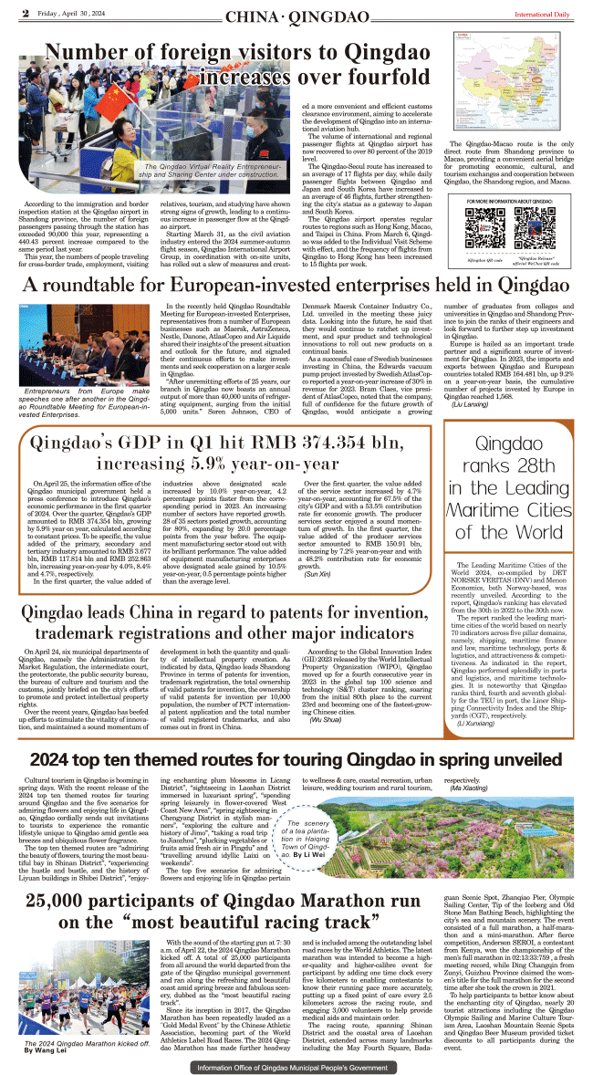 4/30-International Daily News CHINA.QINGDAO 发布日期:2024/5/1 来源:International daily 打印