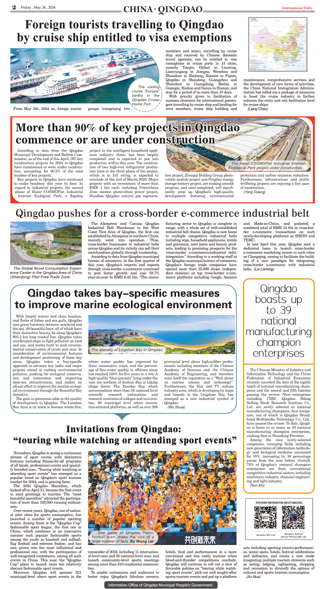 5/24-International Daily News CHINA.QINGDAO 发布日期:2024/5/24 来源:International Daily 打印